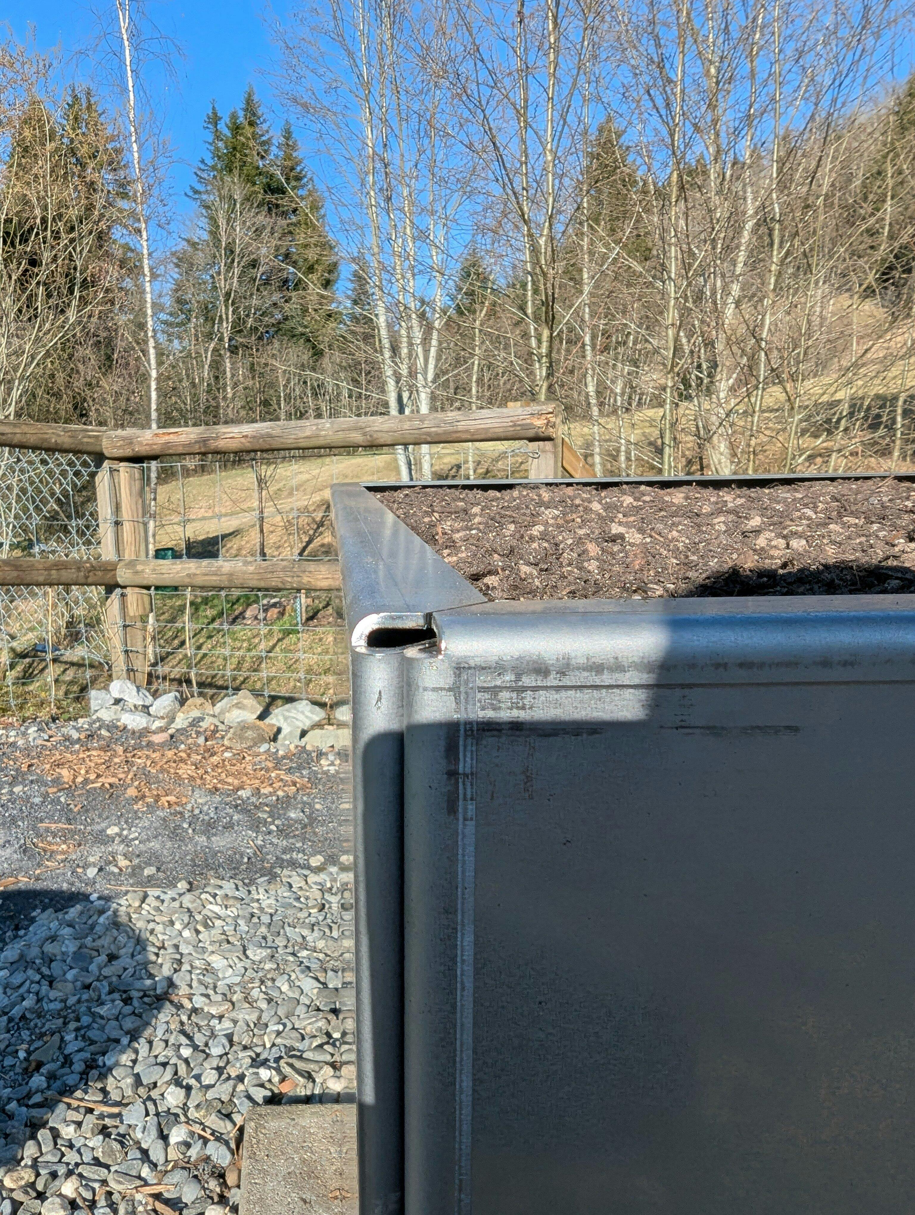 Remarque : le produit est livré avec une surface en acier non rouillée sur laquelle des traces de soudure et de ponçage ainsi que des rayures peuvent être visibles. Ces caractéristiques ne sont pas des défauts de qualité et elles ne seront plus visibles après le développement complet de la couche de rouille noble. La rouille noble se forme au fil du temps sous l'effet des intempéries à l'extérieur. Ce processus peut durer de quelques semaines à quelques mois.